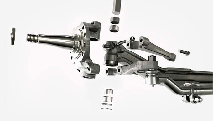 With a wheel cut of up to 55 degrees, low weight for more hauling, needle bearings that roll and an available 12,500-lb rating, Detroit front-steer axles provide the strength, performance, reliability and increased payload capacity you can count on.